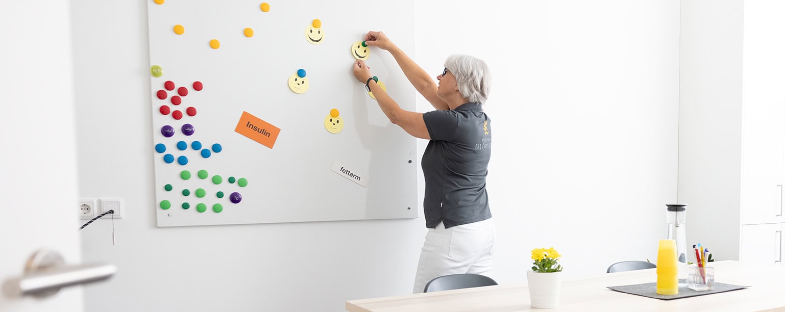 Inhaltliche Themen sind Grundlagen des Diabetes, Kohlenhydrat angepasste Ernährung, Bewegung und Fußpflege.